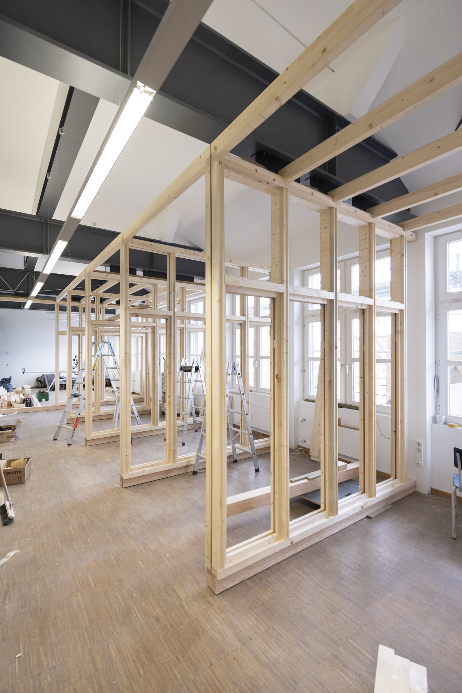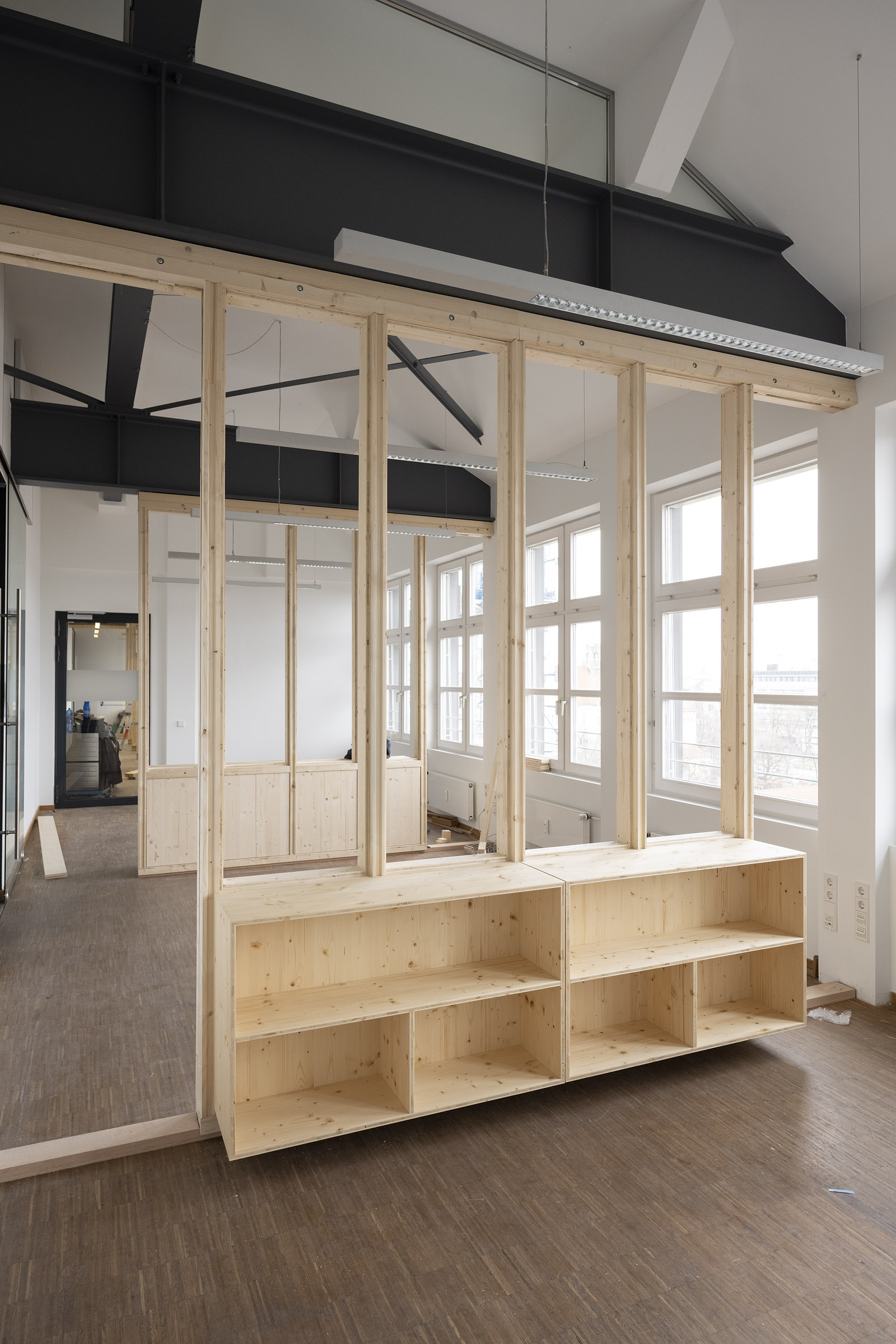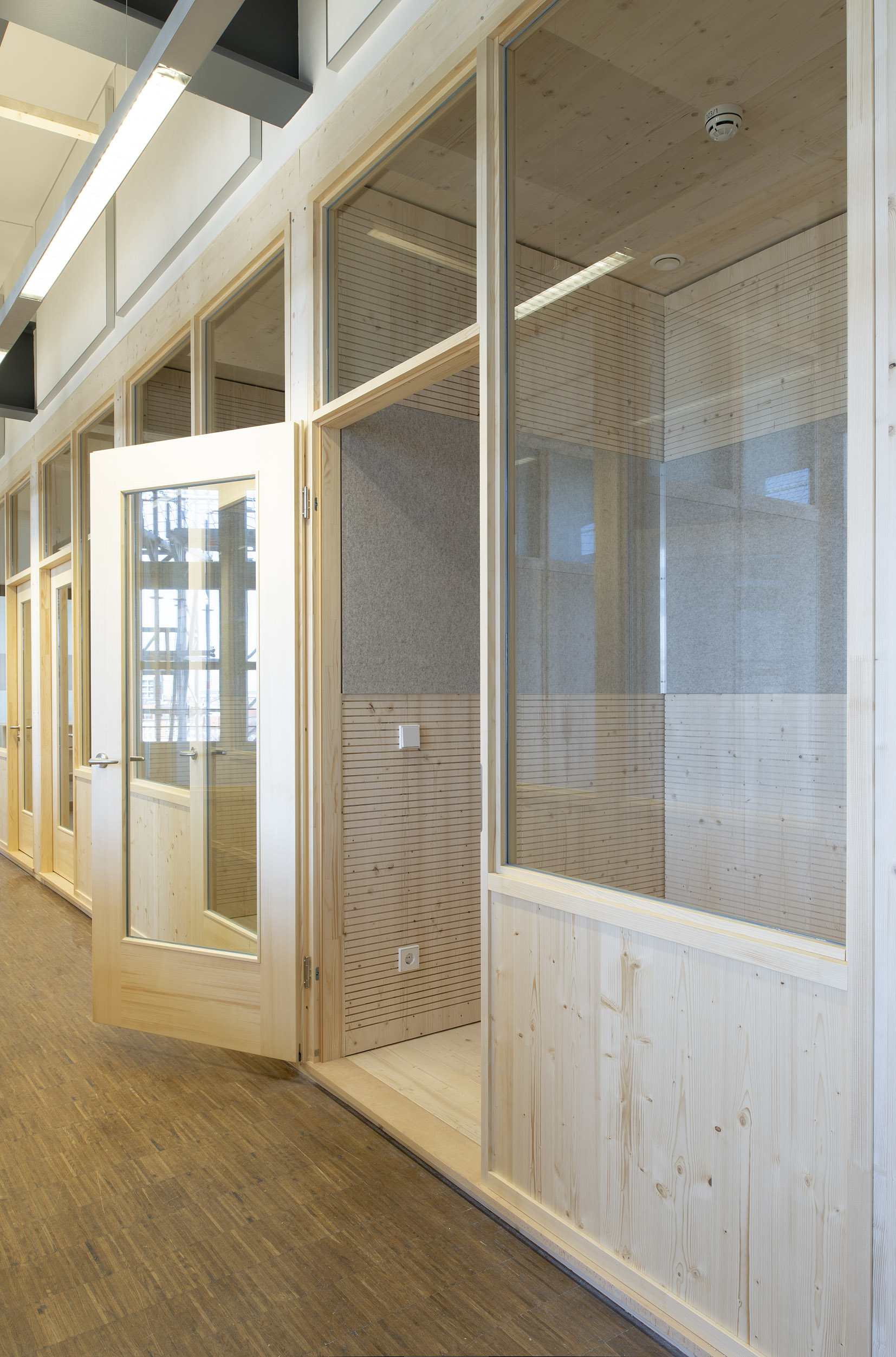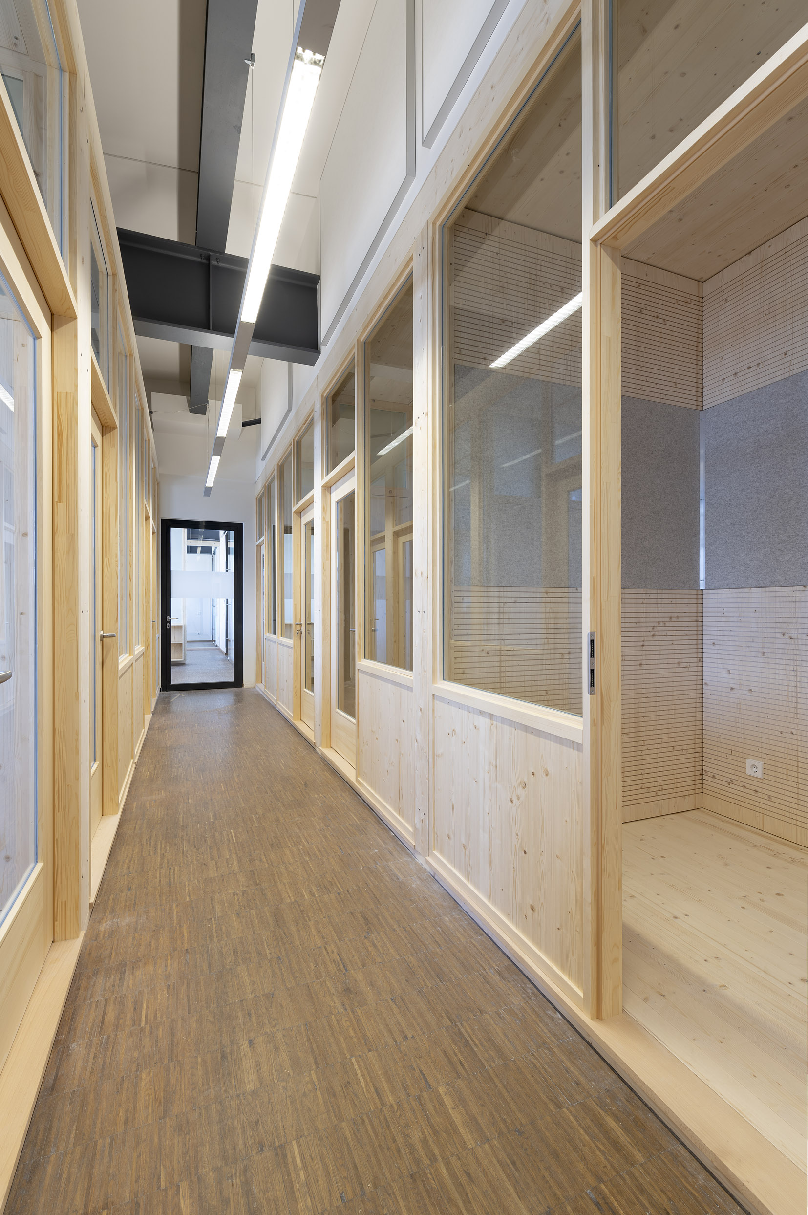 Die Büroräume von Green City im Art Deco Palais sollten neu und kleinteiliger organisiert werden – und dies im Eiltempo. Unser Vorschlag sieht deshalb verglaste Trennwände aus Holz vor. Der nachwachsende Baustoff scheint aufgrund der hohen Nachhaltigkeit für die Green City AG und dem damit verbundenen Anspruch ein idealer Baustoff. Die Herausforderung lag vor allem darin, die Konstruktion flexibel zu gestalten und gleichzeitig die Anforderungen wie Schallschutz an ein modernes Büroumfeld zu erfüllen.