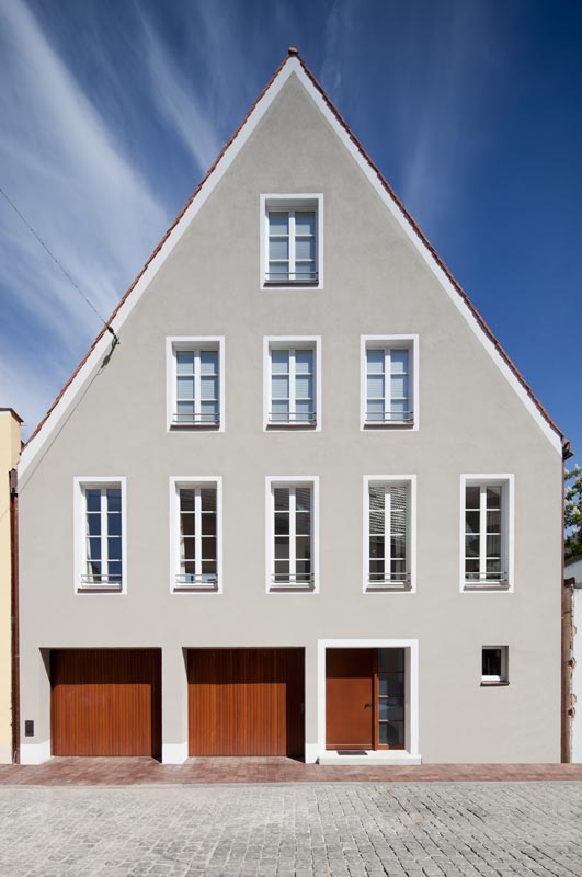 Das Stadthaus in der Fischergasse wurde in der Landshuter Altstadt errichtet. Es fügt sich in Form und Materialität in das vorhandene Stadtbild ein. Eine feine Differenzierung der Fenstergeometrie in den unterschiedlichen Etagen verleiht dem Haus eine ungewöhnliche Erscheinung. Das Haus wurde in einschaliger, monolithischer Bauweise mit einer Mauerwerksdicke von 49 cm errichtet. Schlechte Bodenverhältnisse und die Nähe zur Isar führten dazu, dass das Haus ohne Keller realisiert wurde.